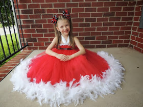 Of course all you really need is a red dress and you can attach a white feather trim yourself.