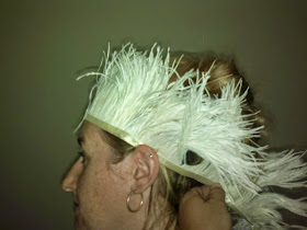 So after toying around with some ideas for a new feather head piece for Halloween this year, we came up with this super easy one that so much can be done with it.