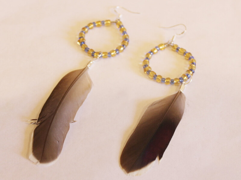 I would also suggest attaching the feather to the earring hook so that it would hang in the center of the hoop.